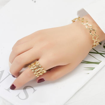 Este anillo y pulsera 2 en 1 es el accesorio perfecto, tiene un diseño minimalista pero lujoso, es perfecto para adornar cualquier look con un toque de elegancia que nunca pasará de moda.