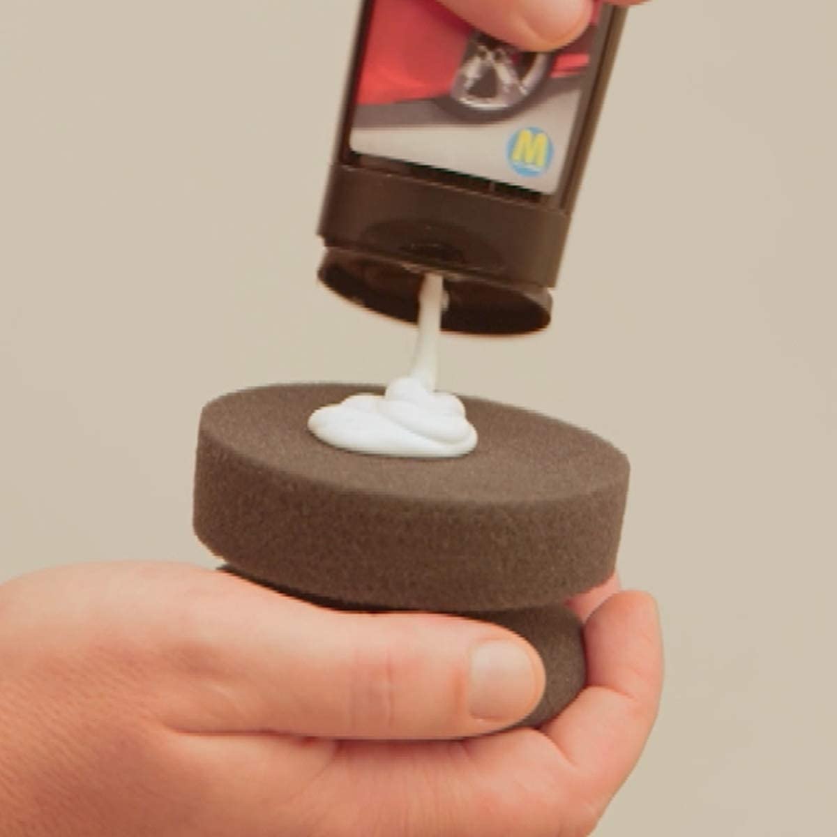 Ubica tu vehículo en un espacio ventilado, preferiblemente bajo la luz directa del sol. Aplica el producto sobre la esponja, frota durante no más de 20 segundos sobre el rayón y luego limpia el exceso de crema 🧽.