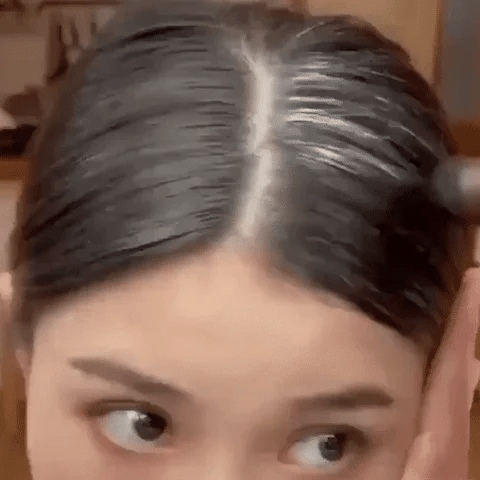 Gire la esponja para sombra de ojos y aplíquela uniformemente para rellenar las líneas. Resuelve el problema del cabello canoso o adelgazado.