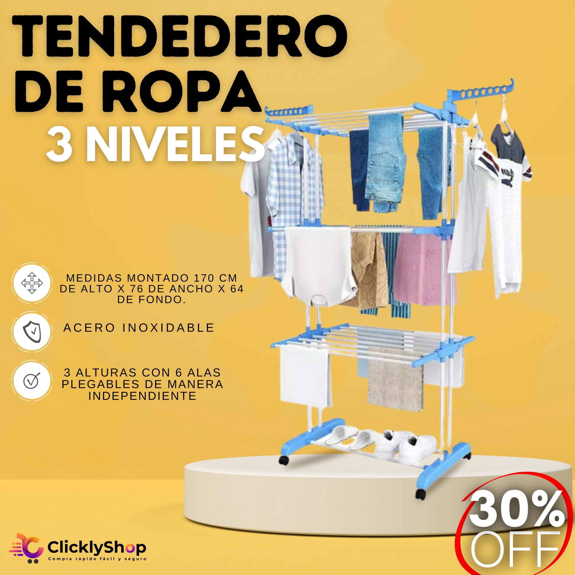 GRAN CAPACIDAD: Cuenta con 3 niveles y 2 alas laterales que te ayudarán a colocar tu ropa con una buena cantidad de espacio entre ellos para que puedan secarse completamente. Incluso las alas tienen agujeros para colgar múltiples ganchos.